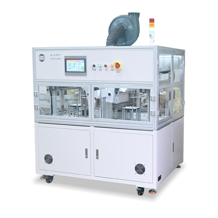 3、送料電暈:吸附平臺運動模組將片料從上料位運行到下料位,中途經過電暈區域,對片材電暈處理。
